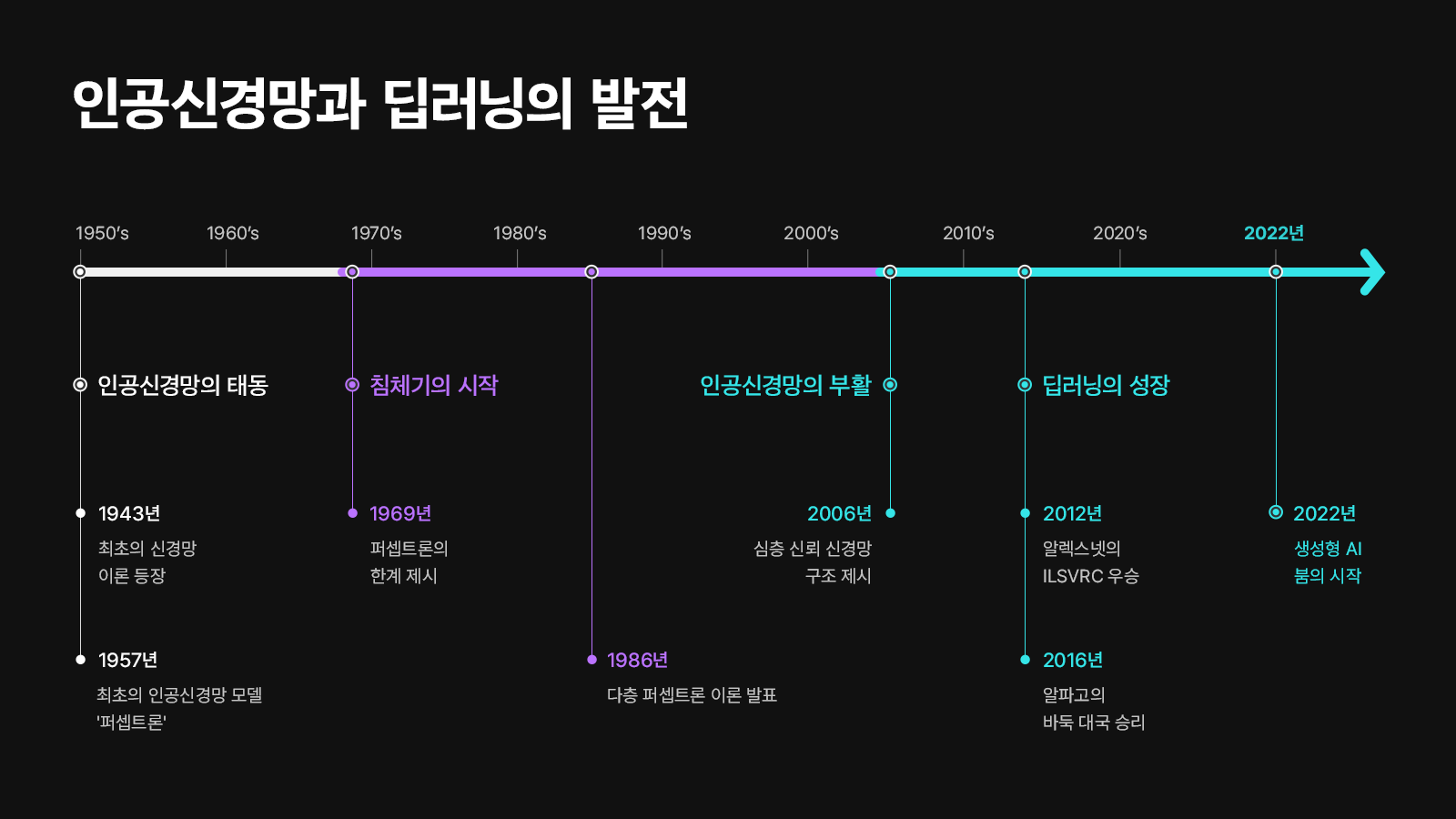AI, 즉 인공지능은 인간의 지능을 본떠서 만들어진 시스템을 의미합니다. 이는 데이터를 학습하여 판단하고 결정을 내리는 알고리즘으로 구성되며, 인간의 사고 과정과 유사한 방식으로 작동할 수 있도록 만들고 싶었던 것인데요. 이 AI의 기원은 시초를 따진다면 1950년대까지 거슬러 올라가며, 영화 '이미테이션 게임' 으로도 소개된 2차 세계대전 당시 나치 독일군의 암호화된 글자를 풀어낸 앨런 튜링의 튜링 테스트를 통해 기계가 인간과 유사한 사고를 할 수 있는지를 탐구하였습니다. 튜링테스트란 블란인드테스트를 통해 대화했을때 위화감이 없다면 그 수준이 AI, 인공지능에 가깝다라는 것 입니다. 이러한 기반 위에서 AI는 점차 발전하게 되었던 것이지요